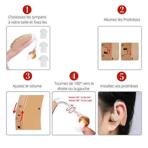 Conçu par  un audioprothésiste et destinée aux personnes sourdes ou malentendantes, notre aide auditive vise à compenser une perte d’audition qu’elle soit mineure ou sévère grâce à notre appareillage acoustiqueGrâce à leur rotation à 360° et leur crochet flexible, les amplificateurs s'adaptent à toutes tailles d'oreilles et peuvent être utiliser pour l'oreille droite ou la gauche.