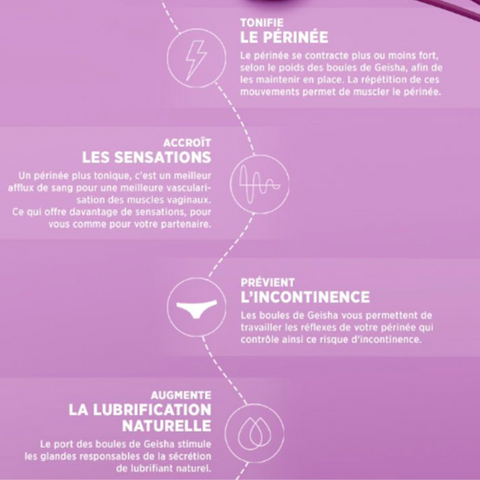 Nos trois boules de Geisha vous aideront à renforcer votre intimité en fonction de vos besoins, mais aussi à votre rythme. En effet les boules de Geisha ont plusieurs bienfaits, en voici quelques uns :