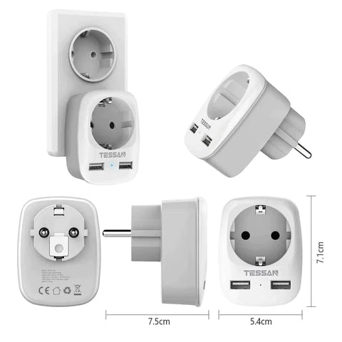 Le plug universel pourra se brancher dans de nombreux pays devenant votre allié de voyage. Plus besoin de prendre tous vos plugs d'appareils. 2 câbles USB plus l'extension de prise murale suffiront à tout charger.