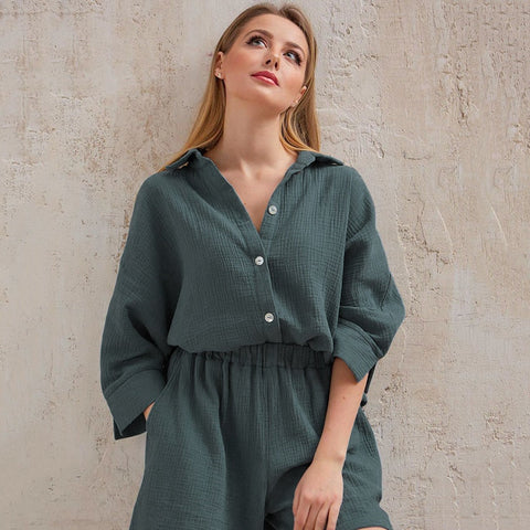 L'avantage de notre ensemble en gaze de coton est qu'il est parfaitement adapté pour une sortie entre amis, pour une journée shopping ou encore pour une balade mais il est également totalement adapté pour une journée cocooning à la maison, une journée détente devant la télé par exemple.