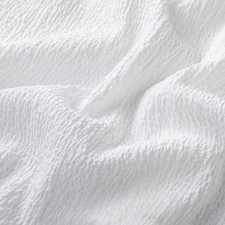 L'ensemble présente une texture subtilement gaufré qui ajoute une touche d'élégance et de sophistication à votre tenue. Que vous le portiez pour une soirée décontractée entre amis ou pour une sortie en ville, cet ensemble vous fera remarquer grâce à sa texture unique.