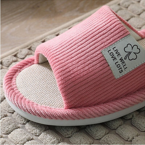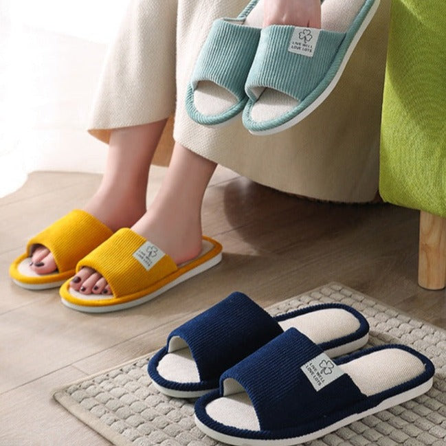 Afin d'amplifier le confort ressenti en portant nos chaussures, elles ont été crées avec deux matières douces et agréables au toucher : le lin et le velours côtelé. Une fois enfilées, vous n'aurez plus jamais envie de les retirer. Par ailleurs, malgré son bout ouvert, nos chaussures sauront vous maintenir au chaud en période hivernale.