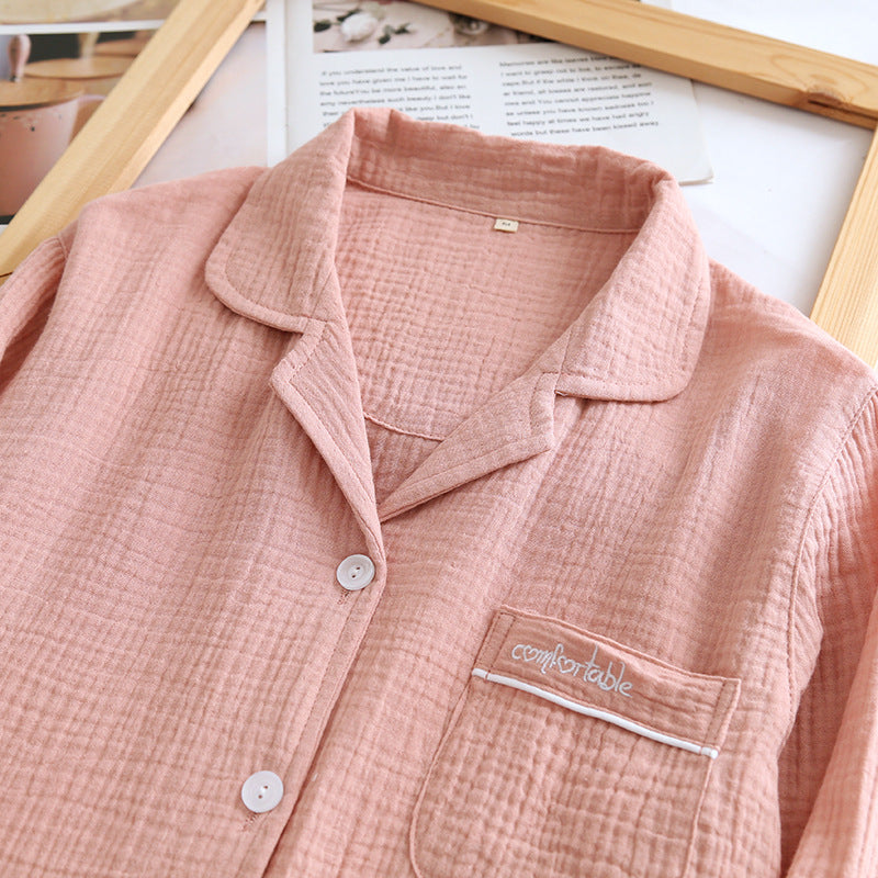 - Un pyjama stylé de la tête au pied : Notre pyjama est composé d'une chemise et d'un pantalon fluide, son aspect froissé et gaufré naturellement vous offrira un look casual chic même pour aller dormir.