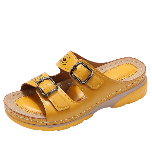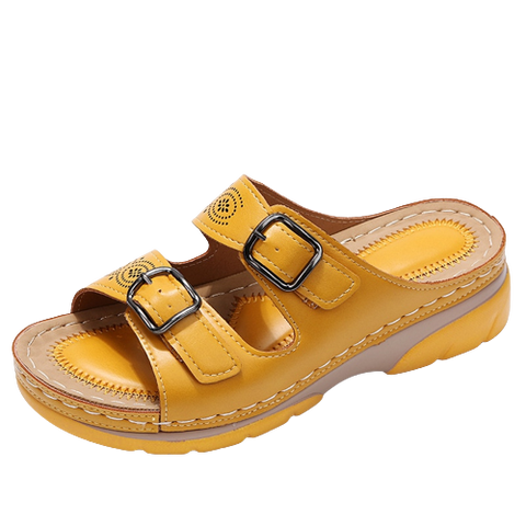Les sandales à plateforme sont dotées d'une semelle extérieure à plateforme qui offre une hauteur supplémentaire tout en maintenant la stabilité et l'équilibre. La plateforme est conçue de manière ergonomique pour répartir uniformément le poids du corps et réduire la pression exercée sur les pieds.